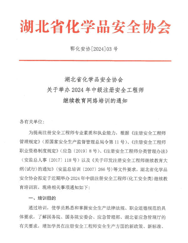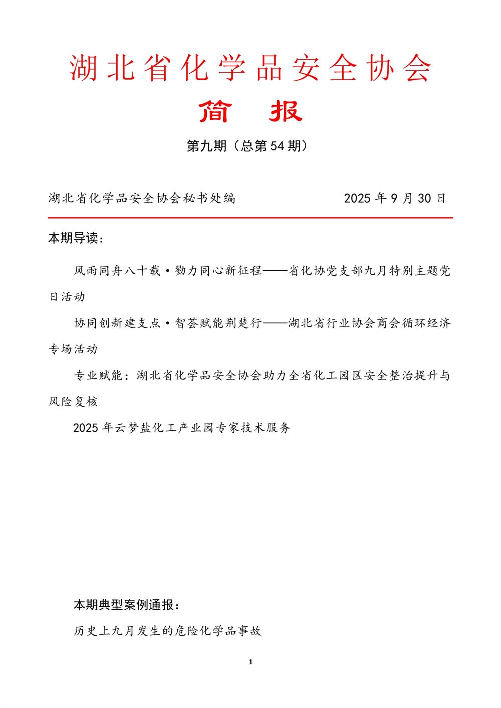 湖北省化學(xué)品安全協(xié)會 簡 報(bào) 第九期(總第54期)